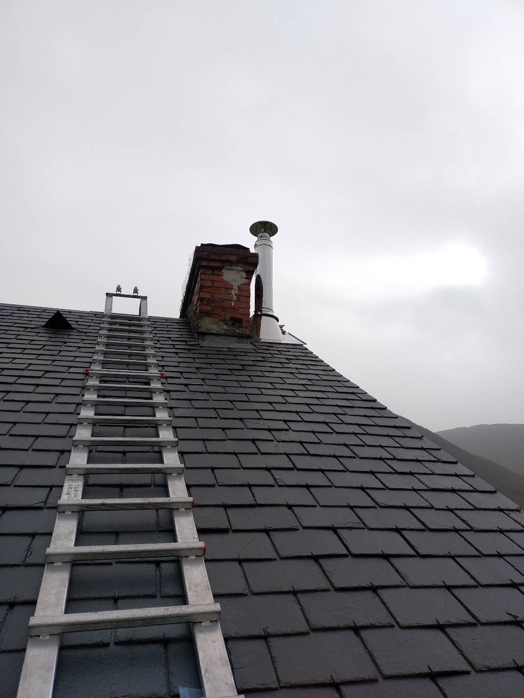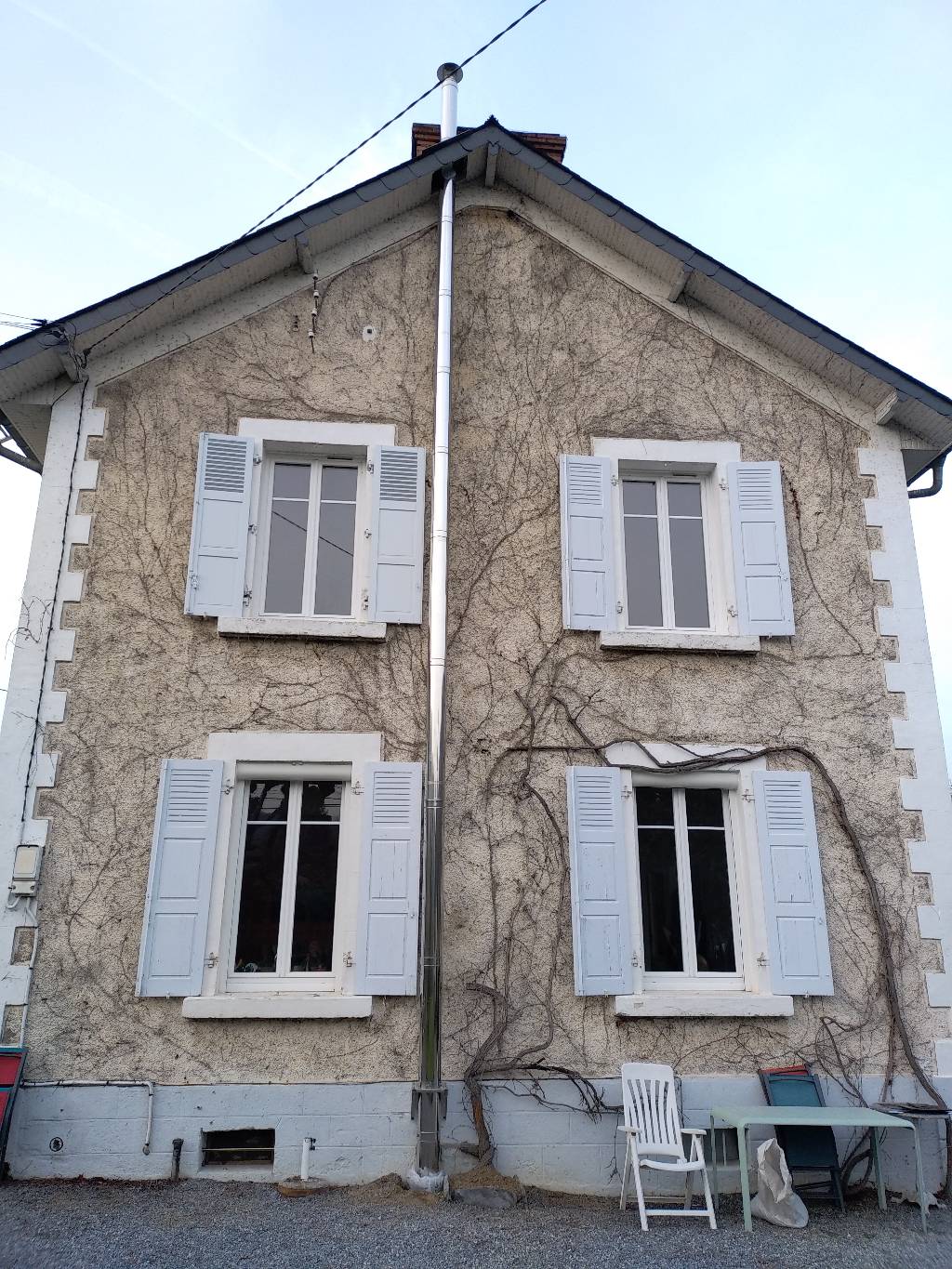 Création d'un conduit de fumées dans le cadre du remplacement d'une chaudière fioul par une chaudière à granulés à Hèches entre Lannemezan et Arreau.