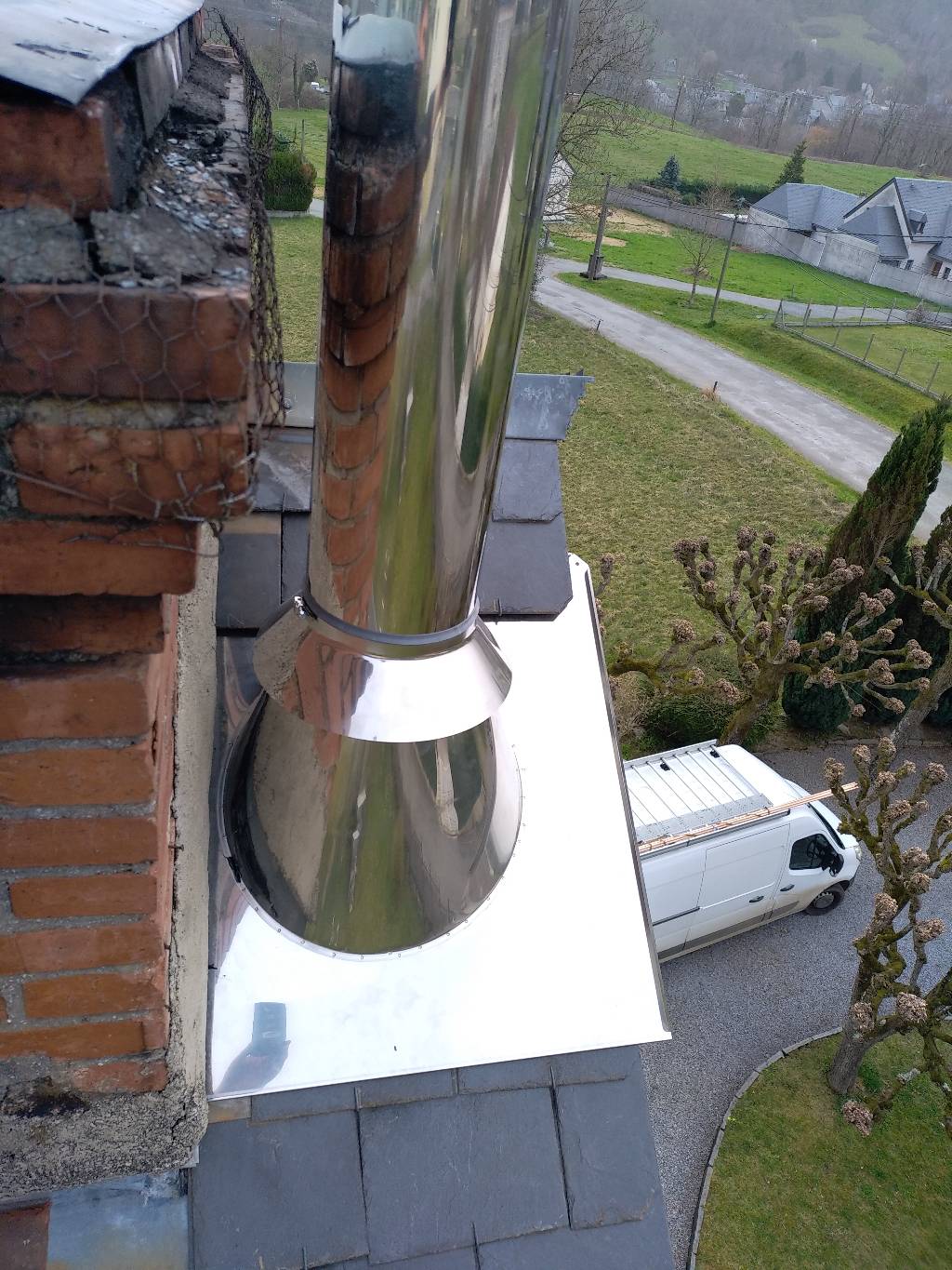Il a donc fallu créer un nouveau conduit en extérieur couplé à la création d'une arrivée d'air pour garantir la conformité et donc la sécurité de l'installation d'une part et d'autre part, le bon fonctionnement de la chaudière validé par une note de dimensionnement du conduit.